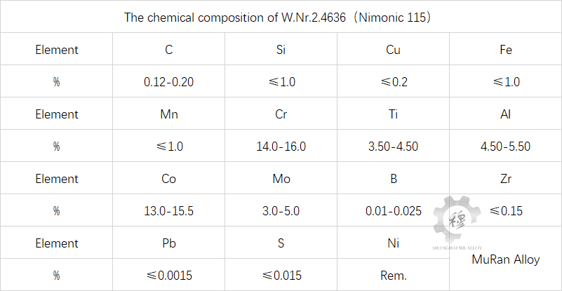 The chemical composition of W.Nr.2.4636(Nimonic 115)