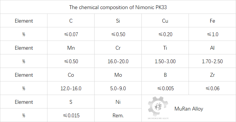 Nimonic PK33 is a vacuum-treated nickel-based alloy designed to provide a sheet material with improved ductility and high creep strength in welded components, replacing Nimonic80A and 90 alloys.
