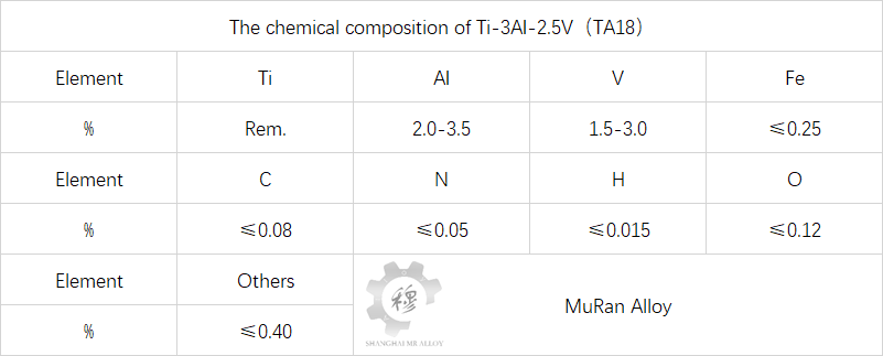 The chemical composition of Ti-3AI-2.5V(TA18)