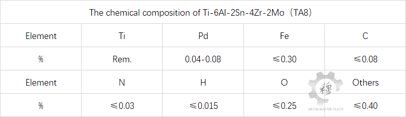 The chemical composition of Ti-6AI-2Sn-4Zr-2Mo(TA8)