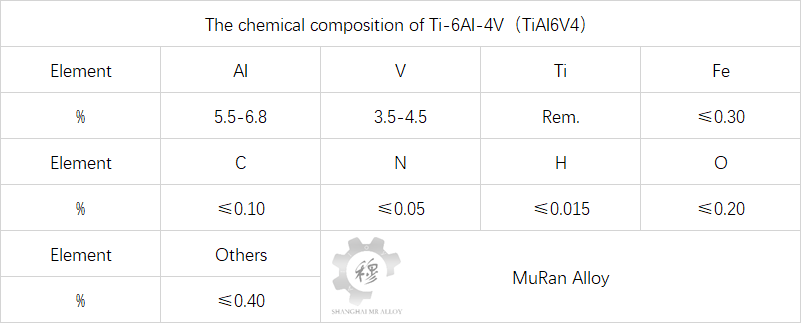 The chemical composition of Ti-6AI-4V(TiAI6V4)