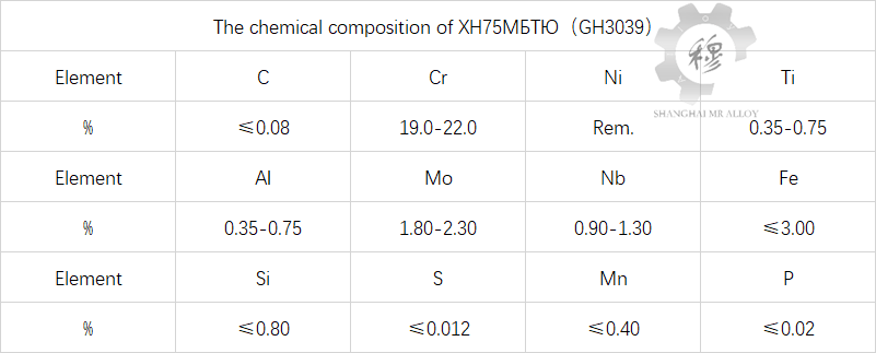 XH75 MBTЮ(RUS)GH3039 is a single-phase austenitic solid solution strengthening alloy. It has moderate thermal strength and good thermal fatigue performance below 800℃, and good oxidation resistance below 1000℃. It has a stable structure after long-term use and also features excellent cold formability and welding performance. Components suitable for long-term use in the combustion chamber and afterburner of aero engines at temperatures below 850℃. This alloy can be used to produce plates, bars, wires, tubes and forgings.